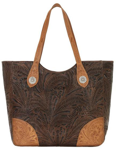 This American West Annie's Secret Zip Top Concealed Carry Shoulder Bag Features Hand-Stained And Hand-Tooled Distressed Chestnut Brown And Golden Tan Leather. Designed For Concealed Carry With Hidden Back Wall Compartment Which Includes Zipper Openings On Either Side Of The Bag. Fits Barrel Up To 10" And Grip Up To 8". The Interior Includes A Signature Cotton Lining With 1 Interior Zipper Pocket And 2 Interior Open Pouches. Zippered Closure. Shoulder Straps With 11" Drop. Each Piece Is Made By Hand, One At A Time.